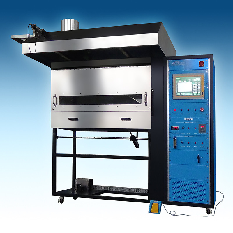 Equipamento de ensaio de fluxo radiante crítico de pavimentos de FRPMedir a propagação da chama da amostra, sob exposição térmica, utilizando uma fonte de ignição radiante.A exposição térmica é a de um incêndio que cresce na sala de origem que através de uma abertura de porta, irradia para os pavimentos de uma sala ou corredor adjacente.