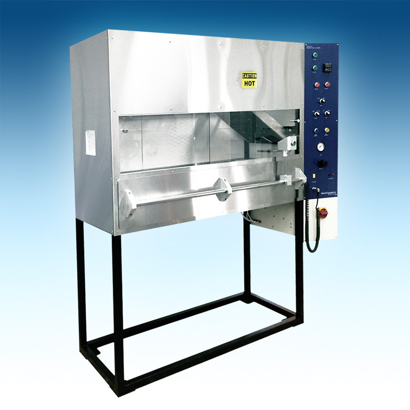 FAR 25.853 Boeing BSS 7365 Equipamento de ensaio de incêndio para materiais de aviação, por FAR Parte 25 Apêndice F Parte VI, is designed to evaluate the flammability and flame propagation characteristics of thermal or acoustic insulation material used in an aircraft cabin when exposed to an electric radiant heat source and a defined flame source.